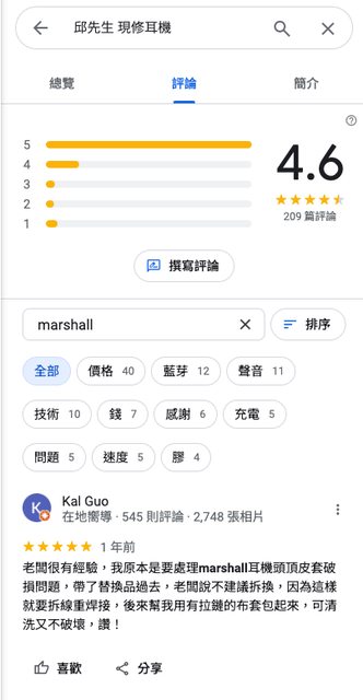 看《邱先生 現修耳機》的google評論