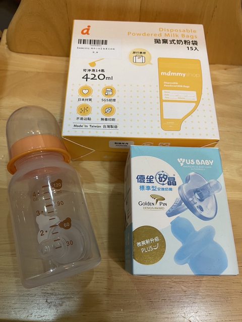 3. 拋棄式奶粉袋/安撫奶嘴&小奶瓶(全新,逛婦幼展時的贈品)