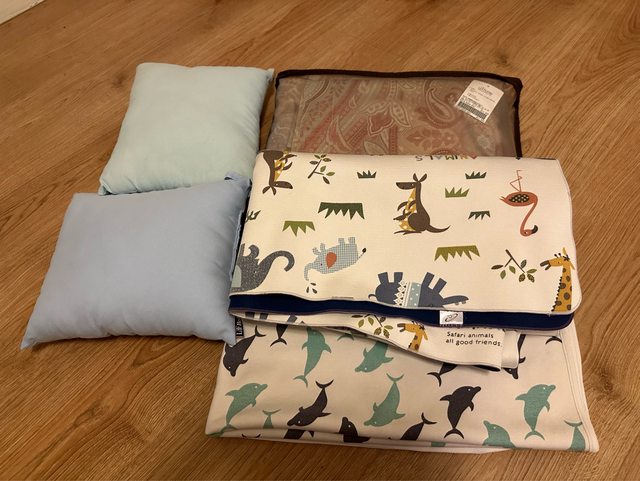 1. 寢具:小枕頭*2,隔尿墊*2,全新床組