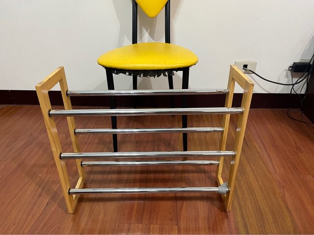 1.(贈出)伸縮鞋架,沒有量測工具所以拿後面椅子當參考。