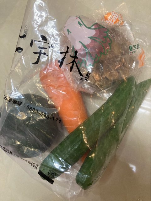 物品項目:小黃瓜、紅蘿蔔、南瓜、舞菇