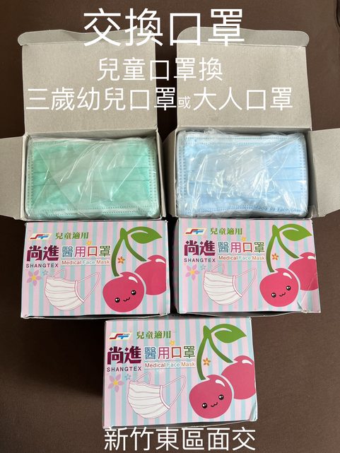 全新兒童口罩共五盒,想交換全新幼幼口罩或大人口罩,兒童口罩有藍綠兩色。兒童口罩買