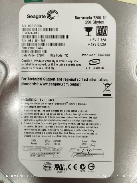 4. SATA Seagate 250G