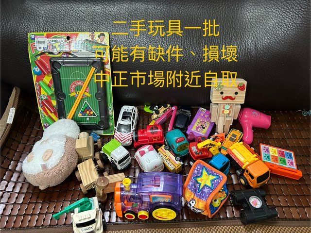 物品項目: 1.兒童桌(很大,請確認車子載的下)(已預訂) 2.工程車玩具(送出) 3.大眼蛙水杯(不含吸管) 4.汽車小百科(破損,需自行修補)(送出) 5.平衡玩具(有缺件)(送出) 6.造型毛巾 7.蝸牛造型小背包 8.小白熊娃娃 9.著色用具 10.英文cd 11.積木 12.玩具一批(送出) 13.二手奶嘴盒 14.吊飾