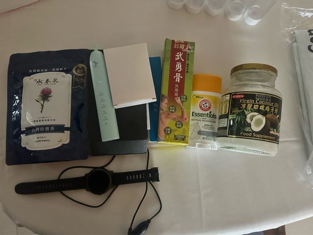 物品項目:體香膏(今年2月過期)、智慧手錶、推拿油、未開封椰子油、電動牙刷(牙