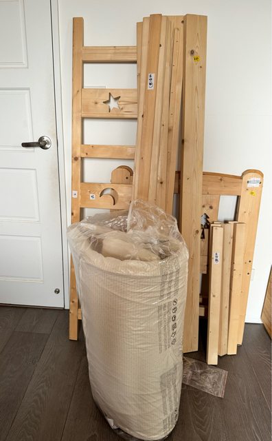 已拆解的兒童床(非嬰兒床),三邊護欄無梯,