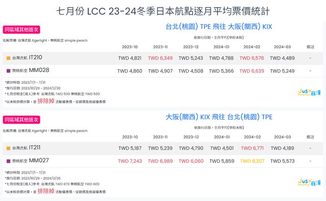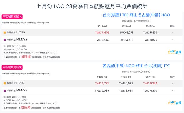 標題[分享] 7月份 LCC 23夏、23冬逐月平均票價統計
