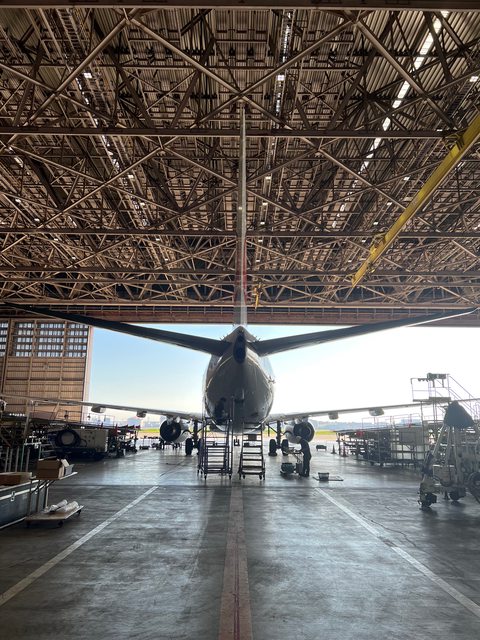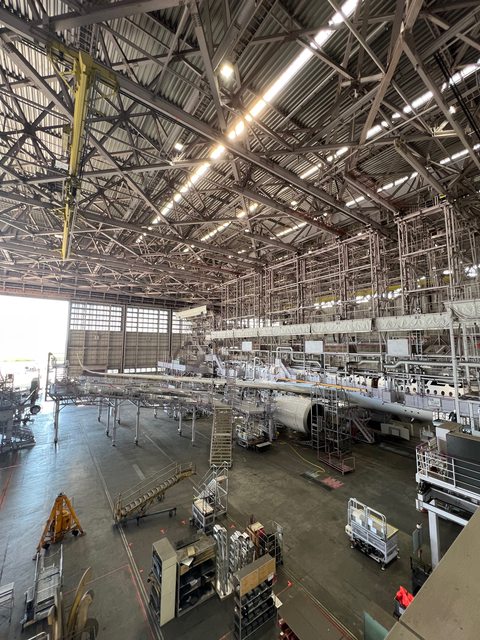 停在M1的唯一一架飛機是架A350。因為M1進行的是較高等級的維修,飛機看起來被五花大