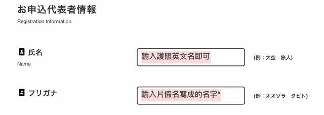 填寫姓名的部分,輸入護照英文名即可。至於片假名的名字(フリガナ),有點類似輸入