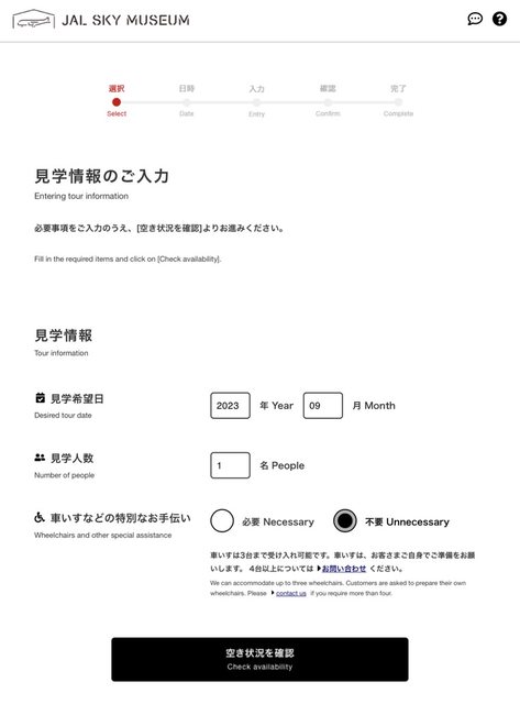 輸入想參觀的年、月,報名人數,以及是否需要輪椅及特殊協助。