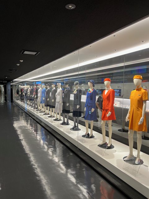 從歷代空服員制服、歷代主力機型模型,以及歷年廣告,從不同角度呈現JAL的發展史。