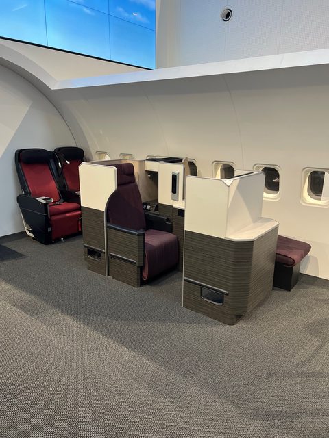 展示的商務艙的座椅是Sky Suite。比較可惜的是座位有種紙糊的質感,也無法調整座椅