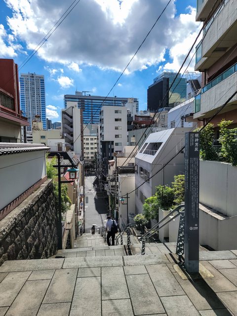 休息到8點多後其他人差不多要來了,走明神男坂下去