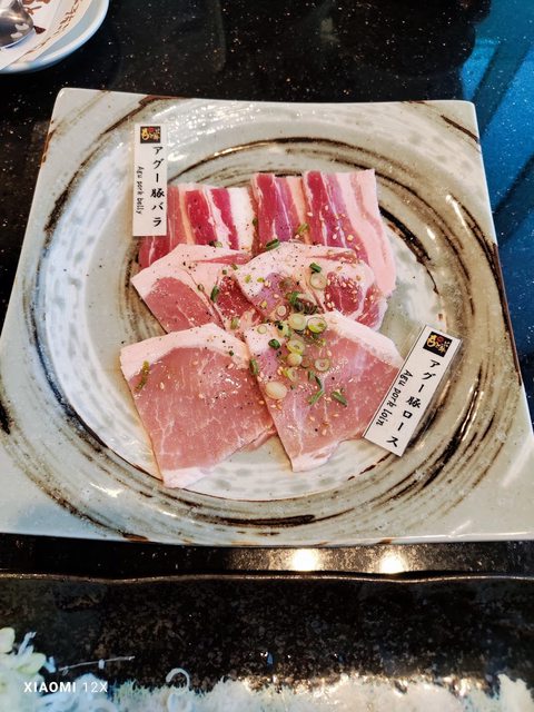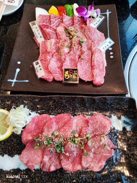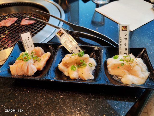 點和牛套餐、阿古豬及牛內臟並欣賞來往的單軌電車(是三節的喔!!)