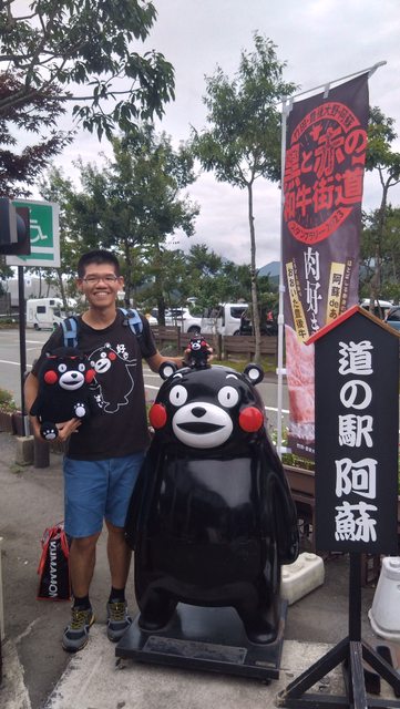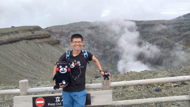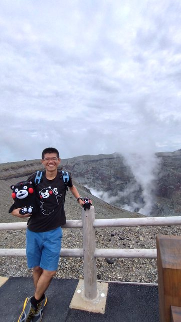 帶著熊本熊和阿蘇火山口合照啦