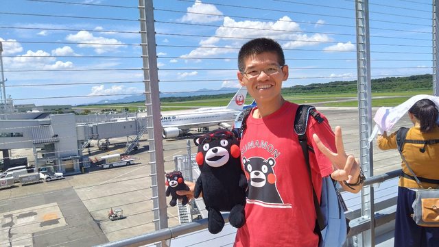 一樣請熊本人幫忙拍照,特地帶小朋友來看飛機的一個爸爸。一樣和他講我超愛熊本,拿