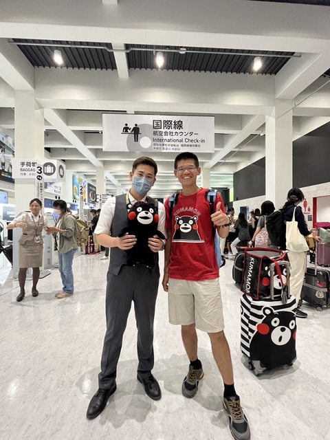 勤人員跑來找我合照說你首航很紅,所有熊本的星宇地勤都知道我哈,和熊本地勤合照一