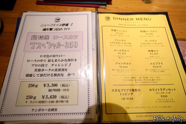 不過我們的目標,是餐廳招牌炸豬排們!於是我們馬上打開了主菜的菜單研究一番。比較