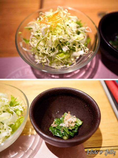 我們點了兩份炸豬排套餐,都有附上沙拉與漬菜。其中漬菜(下圖)有點像是熊本的高菜。