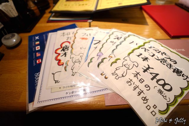 訝異的是,主菜菜單是相當正規的文字菜單,菜色其實包含了各種豬肉料理,包含涮涮鍋