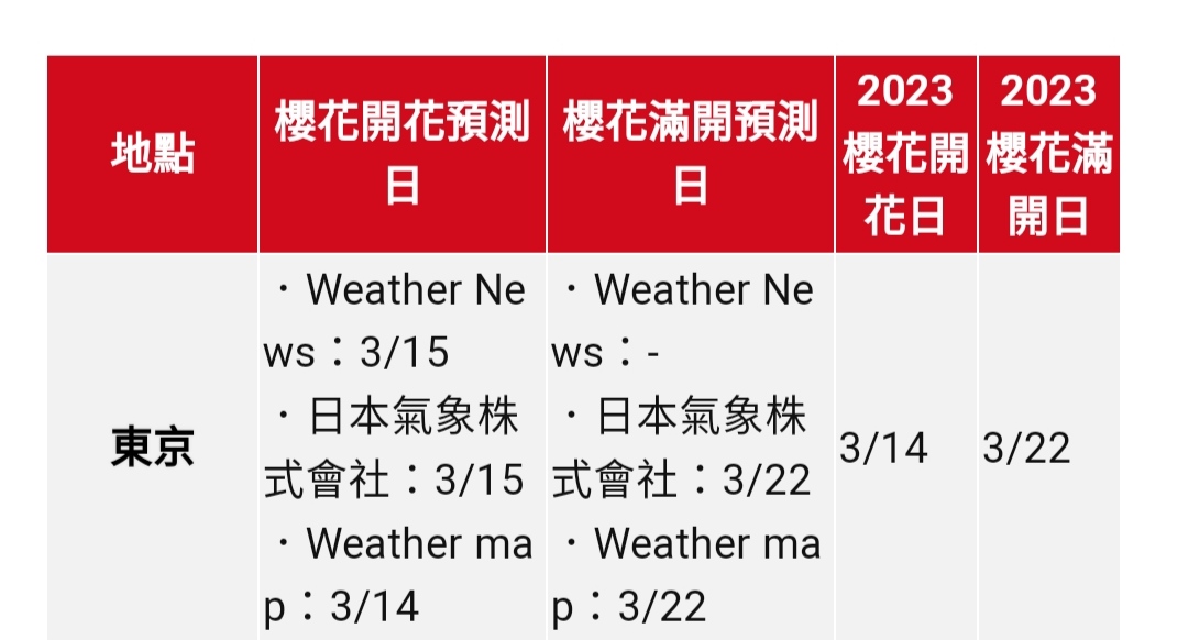 leejones : 櫻花花期不一定吧!今年東京櫻花滿開是03/22。09/19 19:16