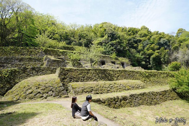 往內走沒多遠,就可以看到長著青苔相當翠綠的多段石垣,這裡就是石見銀山常出現在雜