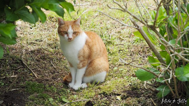 回程走車道時﹐在路上的民家旁遇到一隻大橘白貓,突然又想起家裡的貓貓們啊。