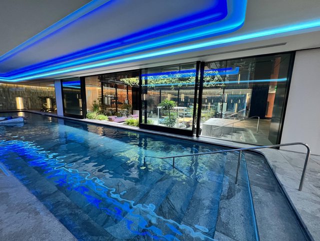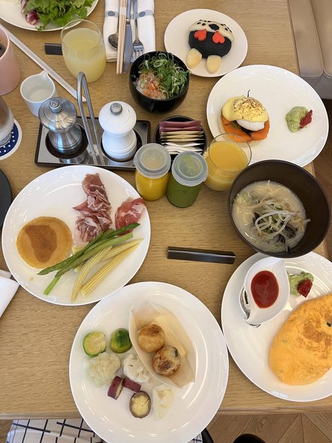 早餐使用的客人很多,需要候位,但餐廳很貼心在入口準備茶和咖啡讓大家飲用,等候時間大約十分鐘即被帶進餐廳入座。早餐菜色非常豐富,品質也很好,品嚐了有特色的日式料理,非常滿意。飯店設施有健身房、泳池和三溫暖。泳池不大,三溫暖也很迷你,但是使用的人不多,可以很享受。泳池前面有個酒吧和戶外中庭,在週末提供烤肉餐點,但必須事先預約。因為有FHR提供的100美金餐飲額度,我便坐在泳池外的中庭點用大廳酒廊的餐點,另外剩下的額度用在飯店大樓外面一樓的飯店咖啡廳,入住時正好跟電影「芭比」合作推出限量餐點,非常有趣。
