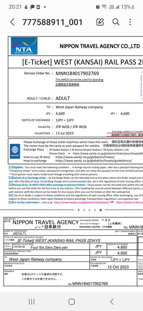 標題[讓售] 關西地區鐵路周遊二日券3張