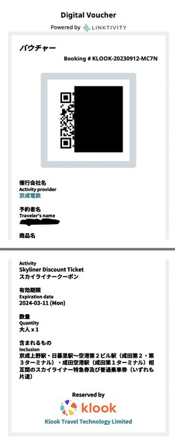 7. 其他說明:因使用當天 Skyliner 有狀況停駛,改搭 NEX,沒用到故售出。