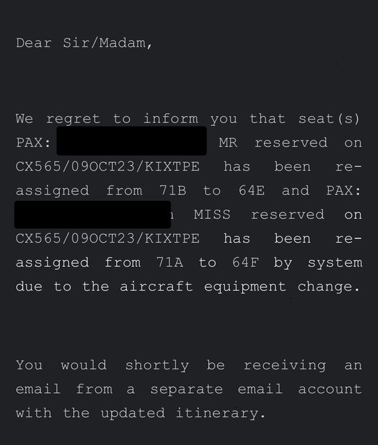噓 mithralin : 這個該去問國泰客服吧,另外信件裡頭有說換飛機機 09/28 00:18