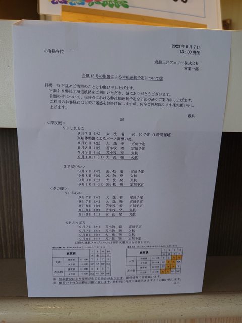 フェリーの状況がわかりましたらご連絡いただければと思います。