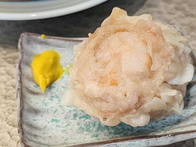 我對「燒賣配黃芥末」的吃法一直搞不懂,但琥珀的燒賣不會太油膩。