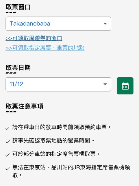 推 leejones : 可以在高田馬場駅取票。11/12 23:19