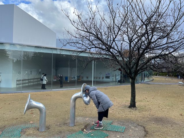我們坐到金澤21世紀美術館下車。今天是週日,參觀的人潮很多,難怪是日本全國總入館