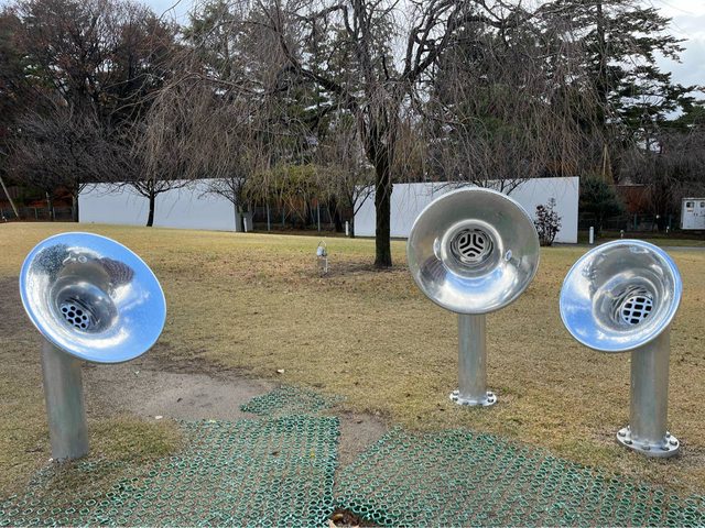 室外的大型傳聲筒,可以聽到陌生人向你打招呼。傳聲筒配對的關鍵就在筒口的花樣。