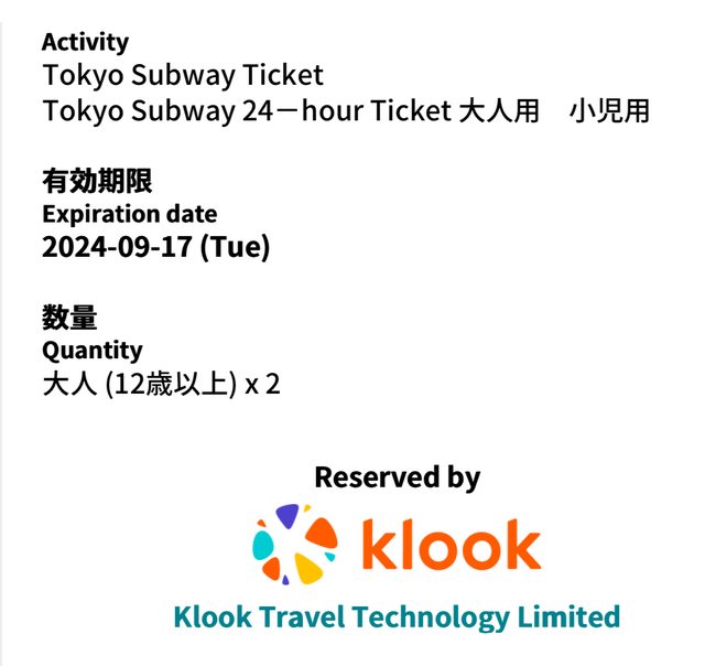 標題[讓售] KLOOK 東京地鐵票 24小時2張