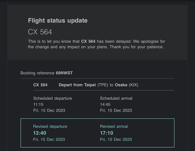 推 flygaga : 12/14 國泰延遲,但只有1個小時,這次2.5小時是我 12/15 18:02