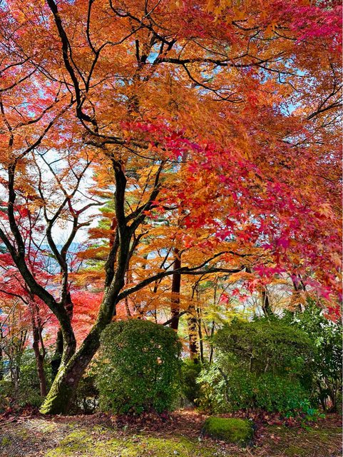 順利搭著接駁車抵達雞足寺 (接駁車和門票的費用,在台灣已先購買) 放晴的雞足寺好美 參道前後被圍了起來,註明是「落葉保存區域」 飄落的紅葉鋪滿整個地面 是我最喜歡的區域