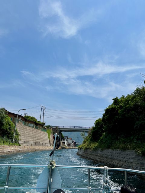 出航囉!航線會先經美田地區的「船引運河」前往外海。。西之島的主要產業為漁業,但
