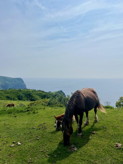 特異,叫不出名字的岩石。搭配如茵綠草與寶石藍的海水,真是視覺饗宴。