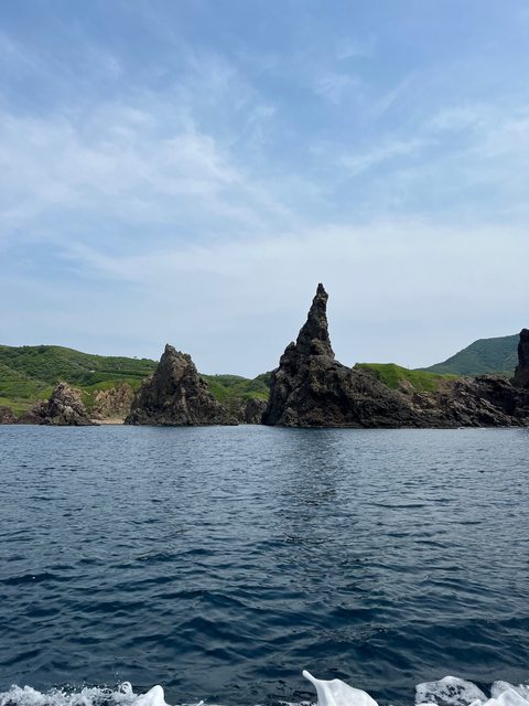 之面(鬼の面)」以及海蝕柱「金棒岩」。觀光船會靈巧的繞行金棒岩一圈,靠得非常近