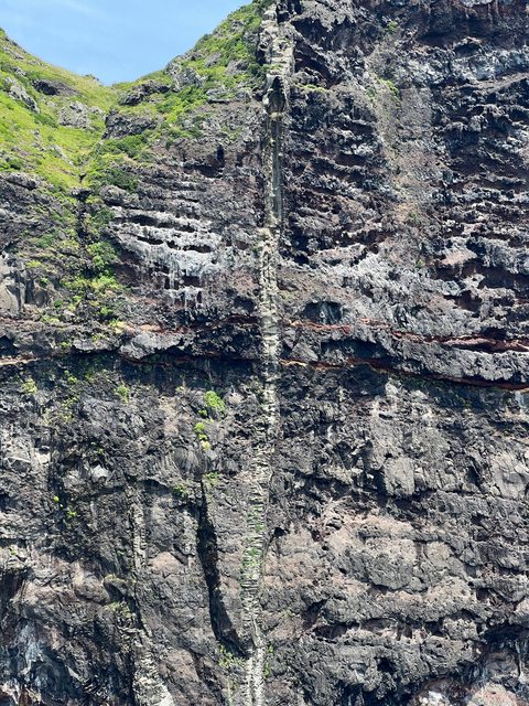 水平層疊的粗面玄武岩,實在很像瀑布,幾可亂真。