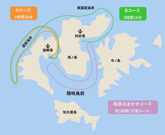 A路線與船長おまかせ都是浦鄉港的「西之島町觀光交流中心(西ノ島町 観光交流センタ