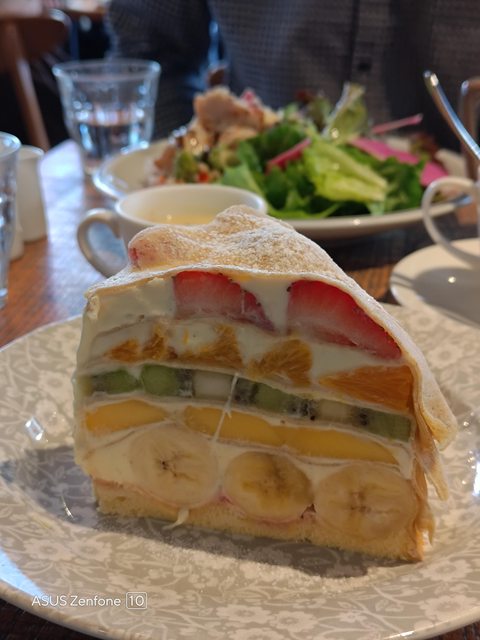 回台灣前的最後一站選擇了甜品店做結尾,水果千層蛋糕包裹著豐富的水果,巧妙地用香