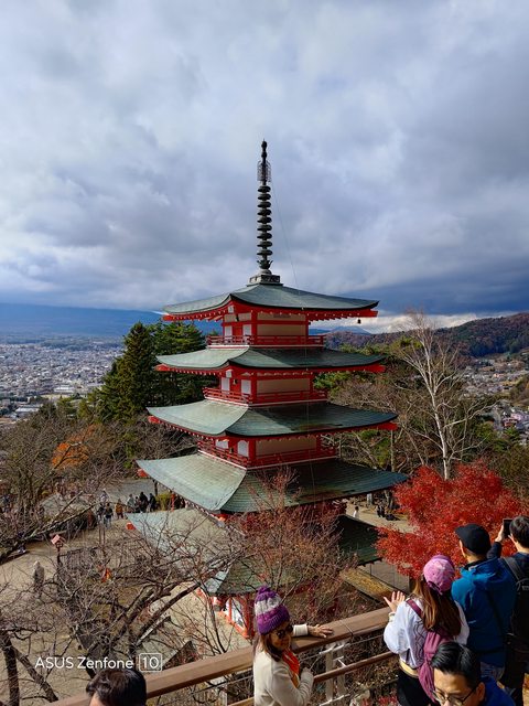 ,旅遊的小夥伴又多了一車(?)第一站是淺間神社的五重塔古色古香的加上紅與黃的楓