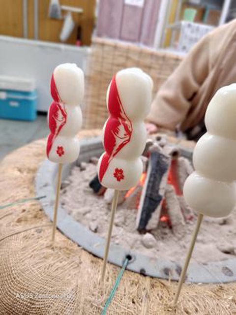 河口湖的糰子有富士山圖案超級可愛!當然得給他照片露個臉囉,用炭火來烤肯定是很講