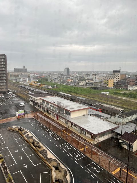 不過這間房間我最喜歡的是正對益田駅的窗景。可以欣賞來來往往的國鐵色車輛。