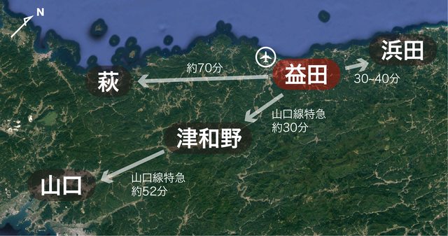 座機場「萩・石見空港」可飛往東京,交通便利。往來浜田、津和野、萩等景點或城市都