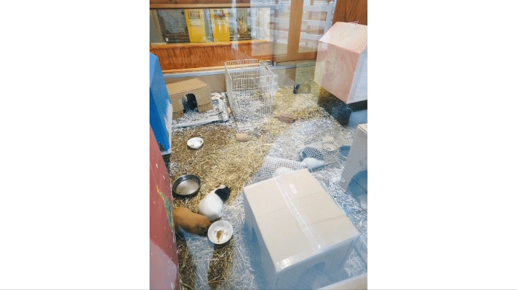 半圓透明罩可以讓孩子伸出頭近距離觀察兔子